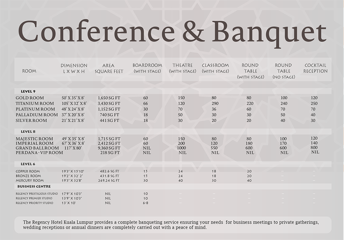 Offering the opulent elegance only our Regency Grand Ballroom provides. Hosting your banquet, ball or wedding reception is our delight. High ceilings and luxurious décor add a real touch of timeless class to your occasion making it all more special. Celebrating an engagement, birthday or wedding anniversary or host seminars and meetings in one of the hotel’s function rooms with privacy and convenience.